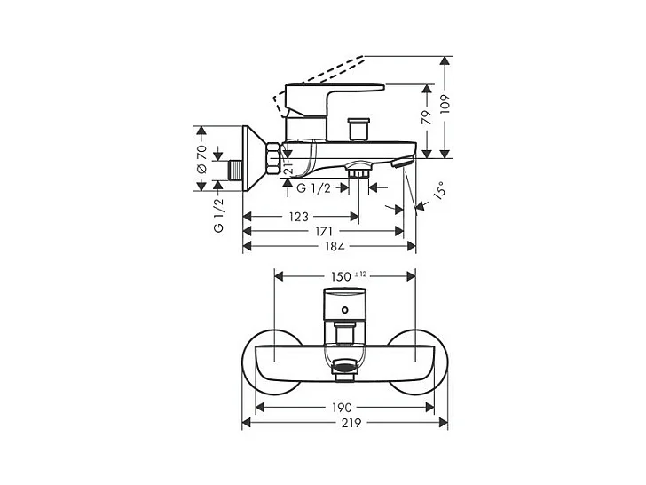 Mitigeur bain douche mécanique monotrou HANSGROHE Vernis Blend C2 chromé