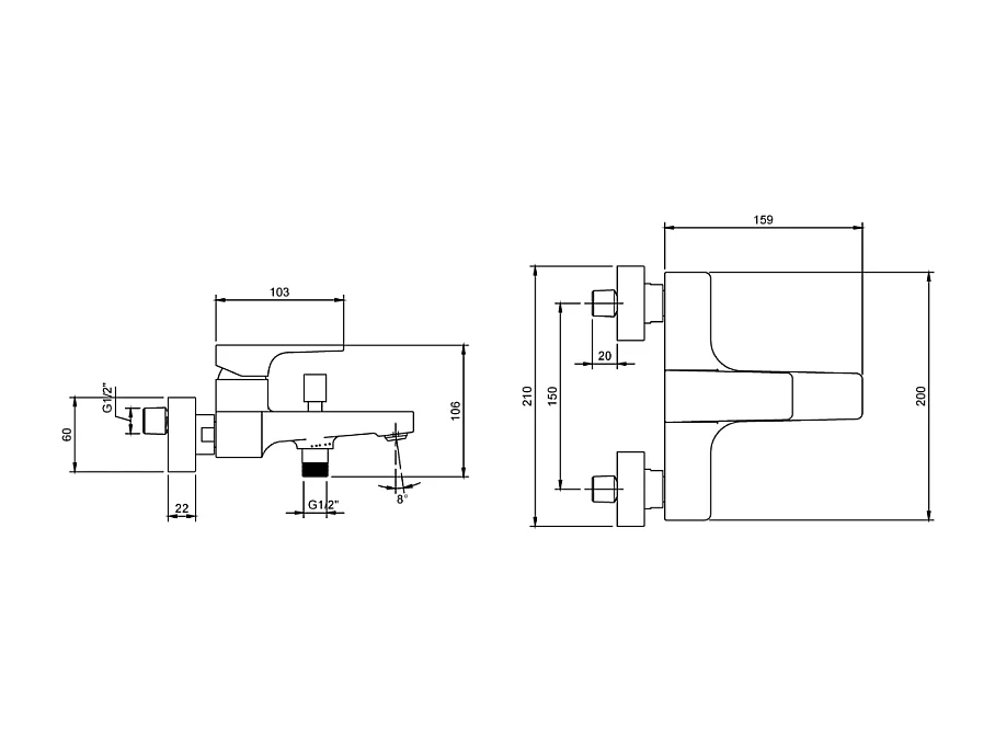 Mitigeur bain douche mécanique VILLEROY ET BOCH Architectura Square Noir mat