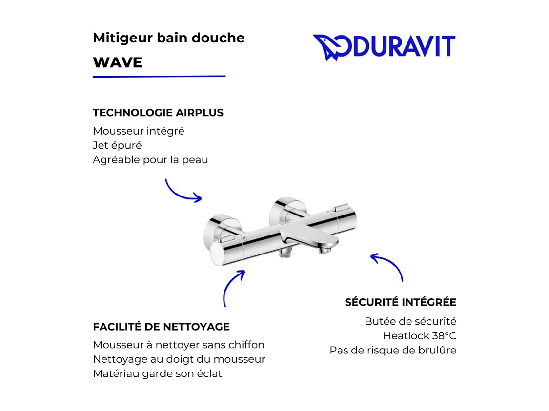 Mitigeur bain douche thermostatique DURAVIT Wave chromé brillant