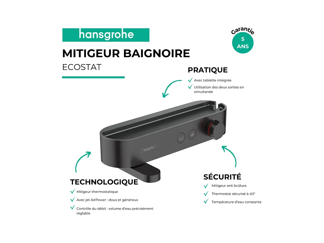 Mitigeur baignoire thermostatique HANSGROHE ShowerTablet Select 400 noir mat