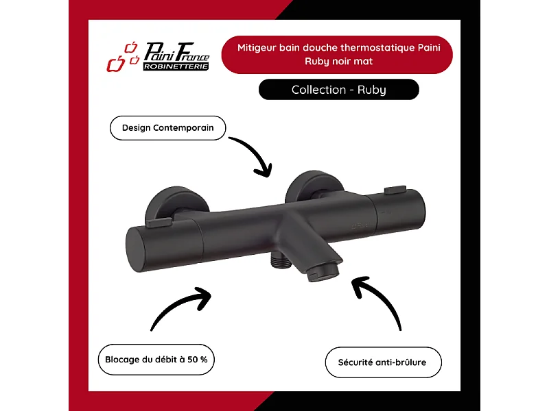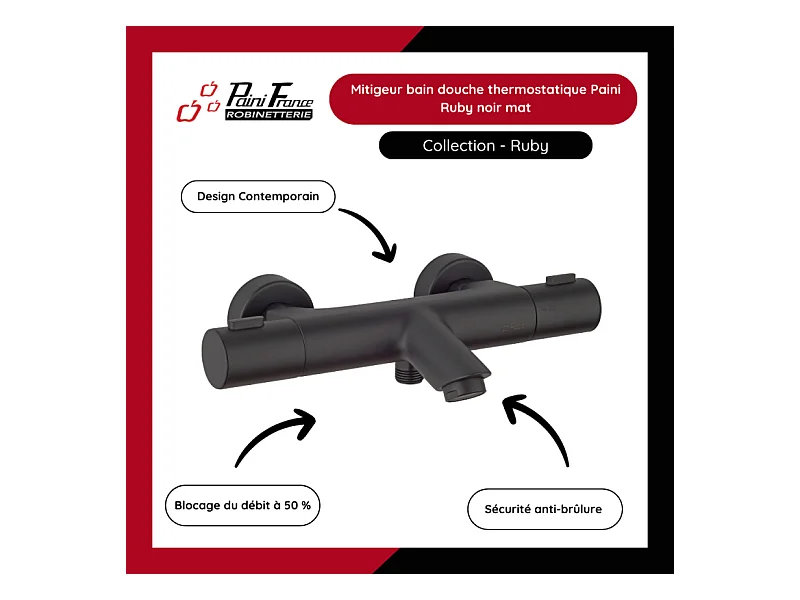 Mitigeur bain douche thermostatique PAINI Ruby Noir mat