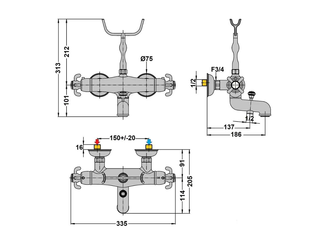 Mitigeur bain douche thermostatique PAINI Tiffany chromé