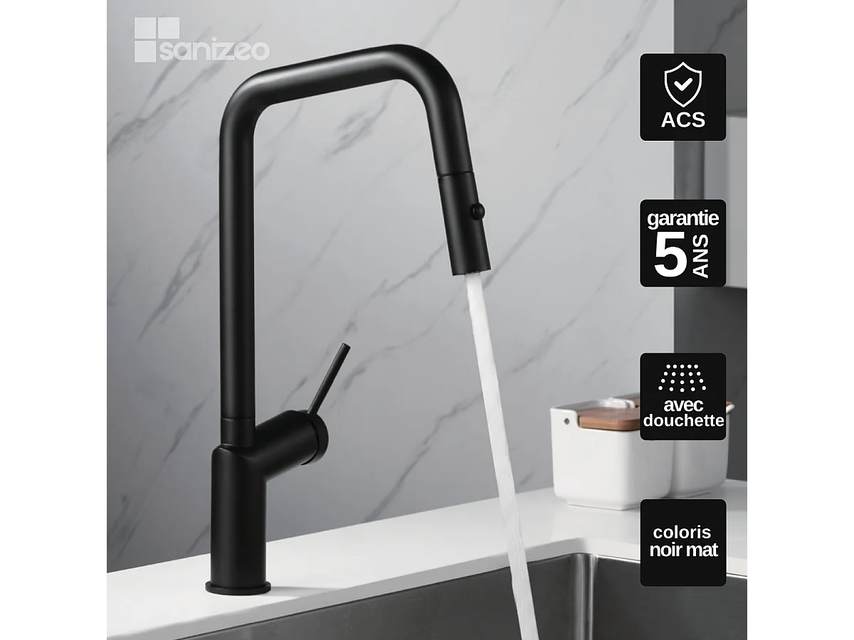 Mitigeur Évier Cuisine avec douchette extractible noir mat - Design moderne – BONN IMEX