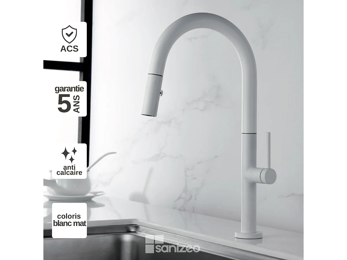 Mitigeur Évier Cuisine avec douchette extractible blanc mat - Design moderne – SAMOA IMEX