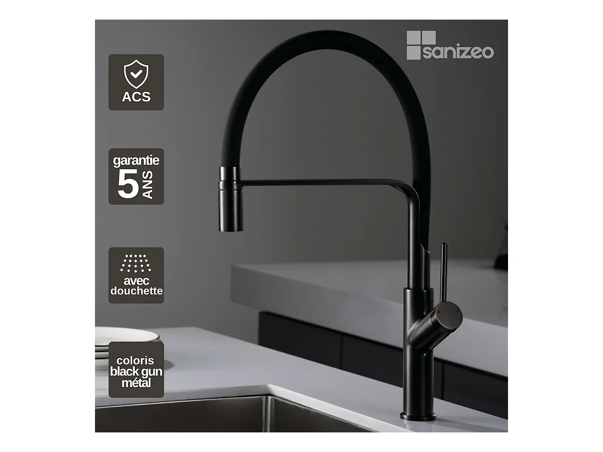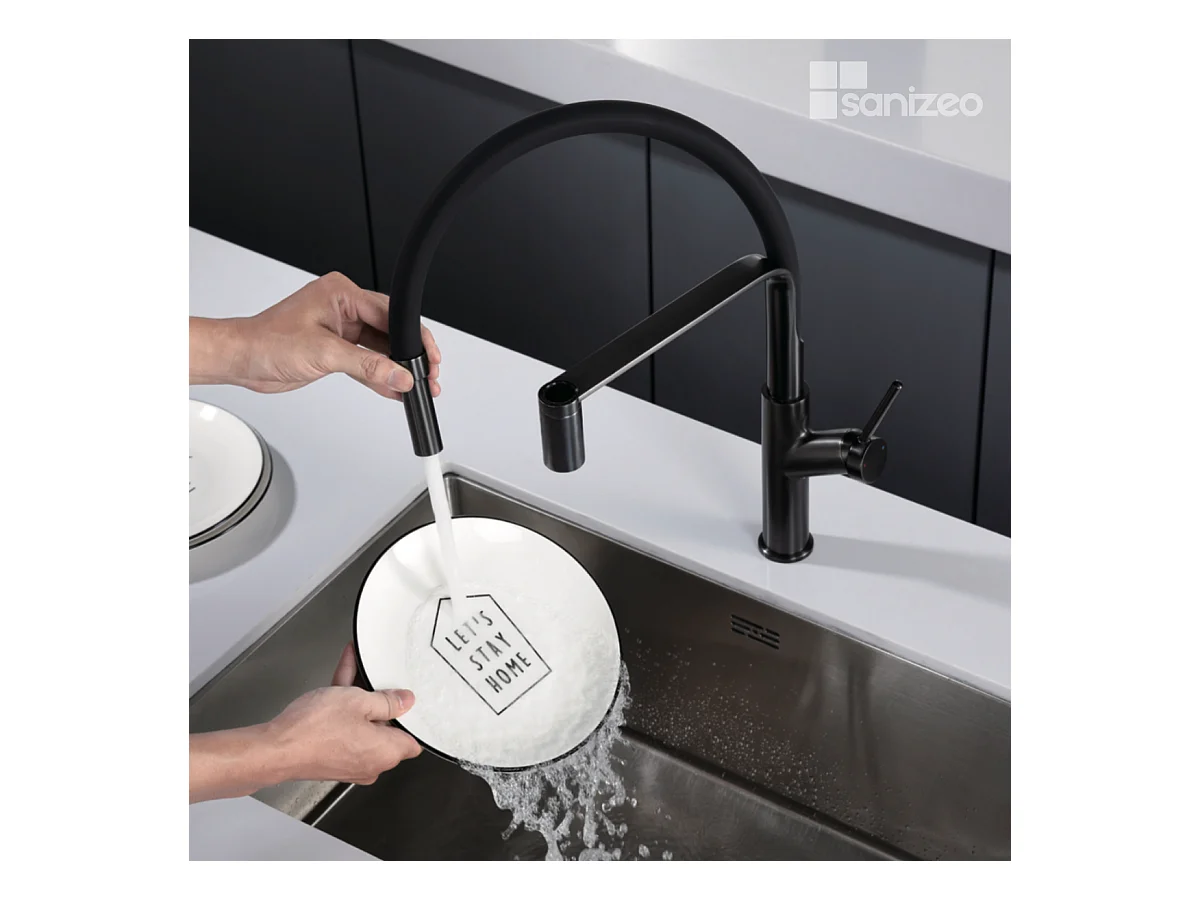 Mitigeur Évier Cuisine avec douchette extractible noir métal - Design moderne – SENA IMEX