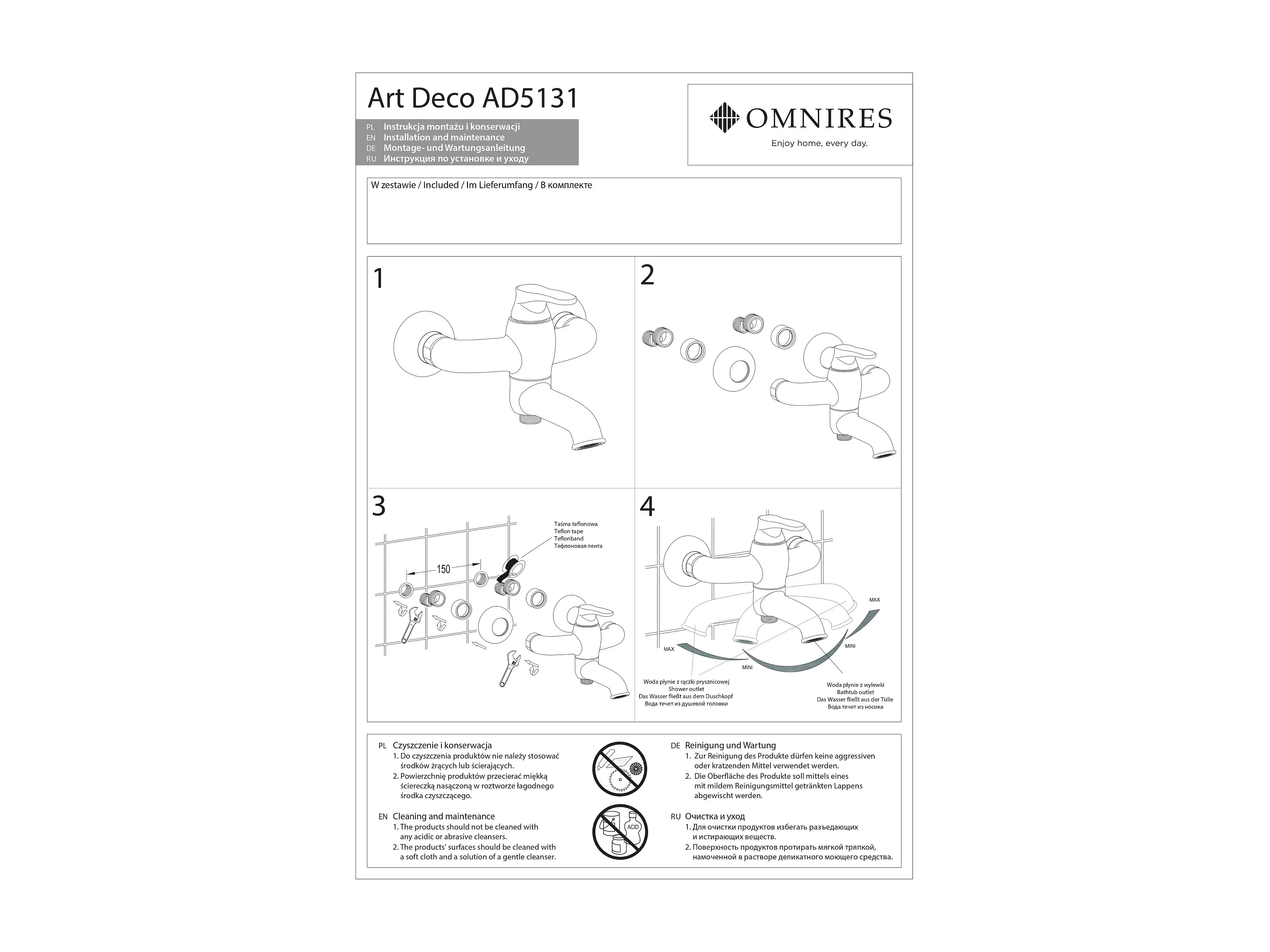 Mitigeur de baignoire avec set de douche et bec rabattable ART DECO Couleur: or