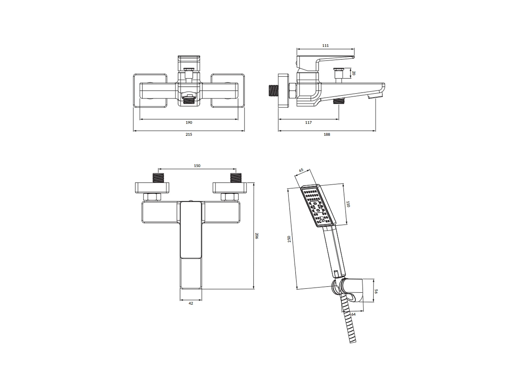 Mitigeur de baignoire avec set de douche PARMA Couleur: nickel