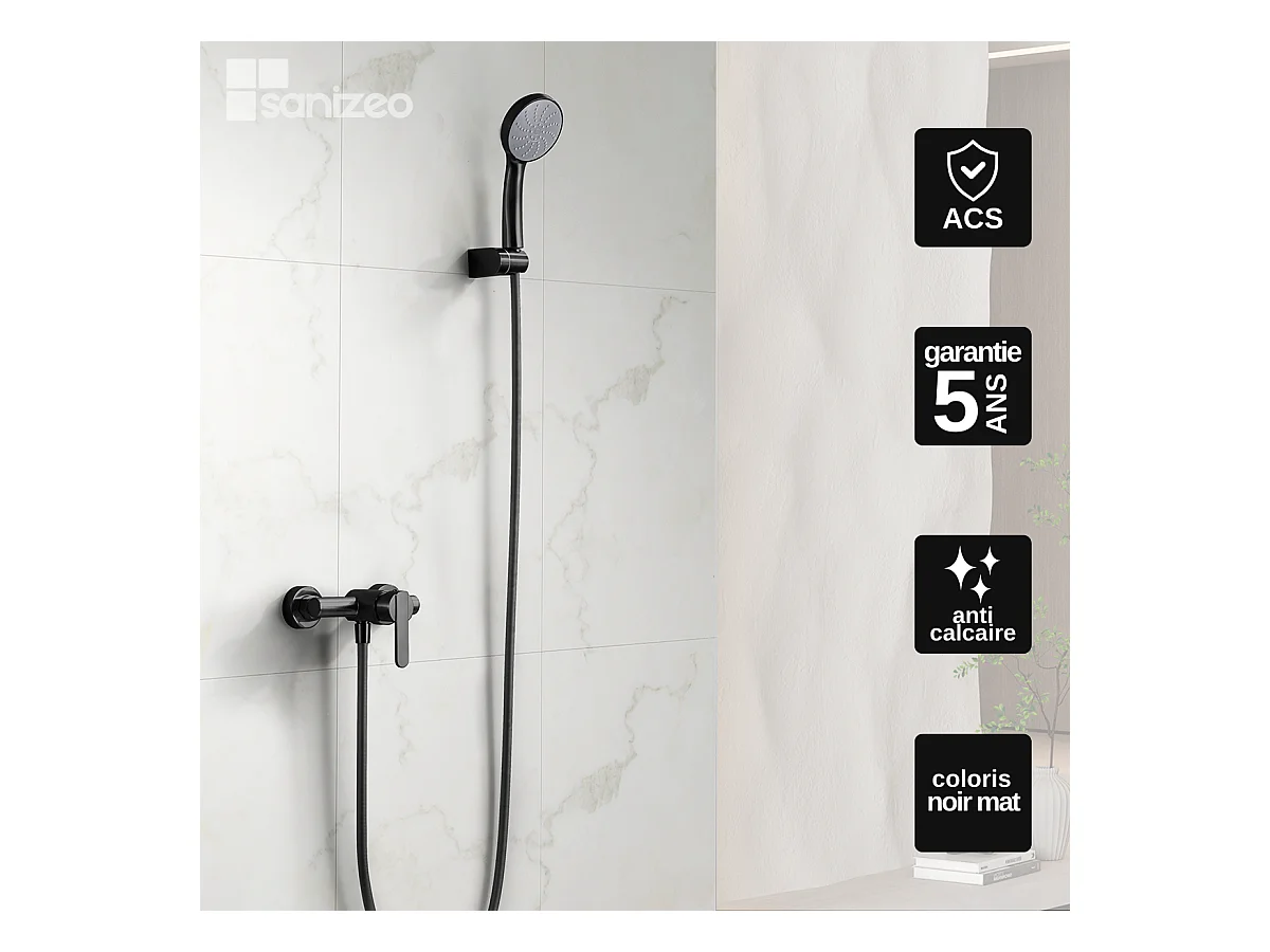 Ensemble Bain/Douche Anti-Calcaire Noir Mat SUECIA BDC032-7NG