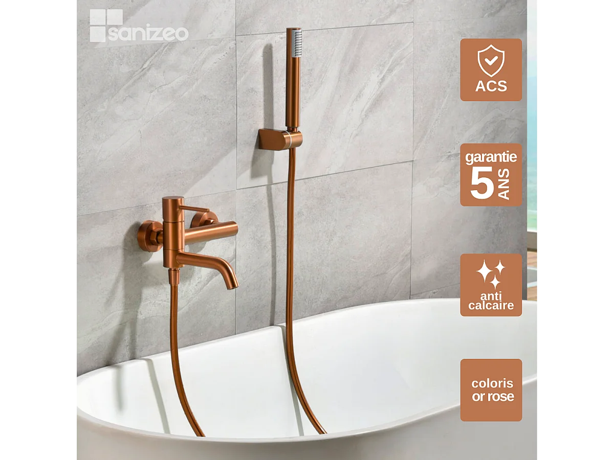 Ensemble Bain/Douche Anti-Calcaire Or Rose Cuivré MONZA BDM039-4ORC