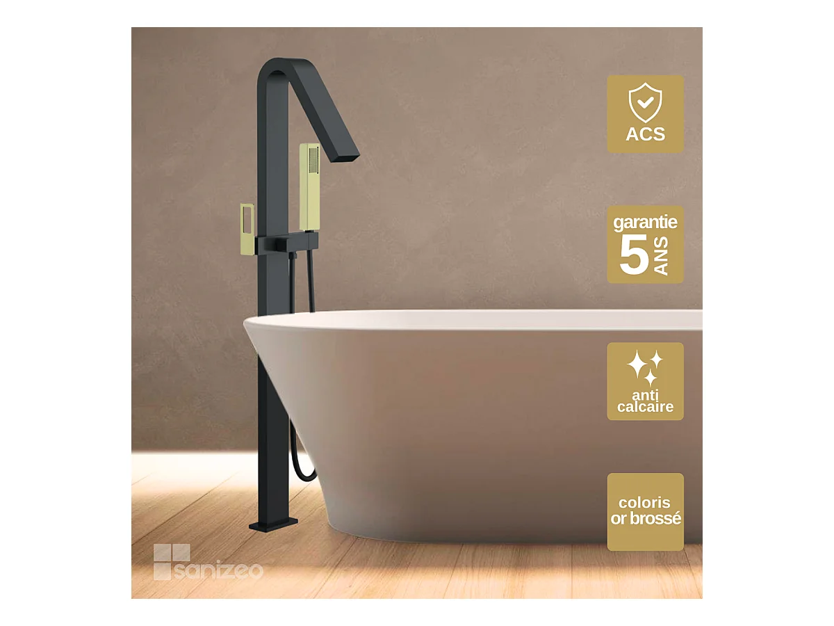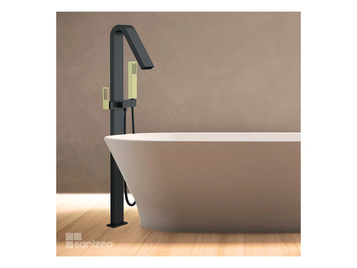 Robinet Mitigeur de Baignoire sur pied avec Douchette Noir et Or SUECIA BBEC32/NGOLD