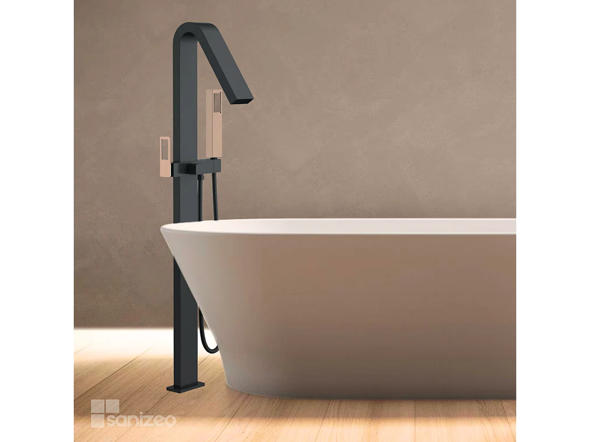 Robinet Mitigeur de Baignoire sur pied avec Douchette Noir et Or Rose Cuivré SUECIA BBEC32/NOR
