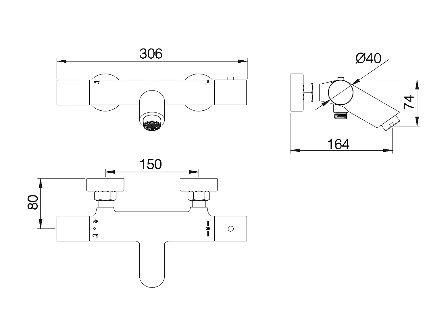 Ensemble Bain/Douche Thermostatique Anti-Calcaire Noir Mat MONZA BTM039-4NG