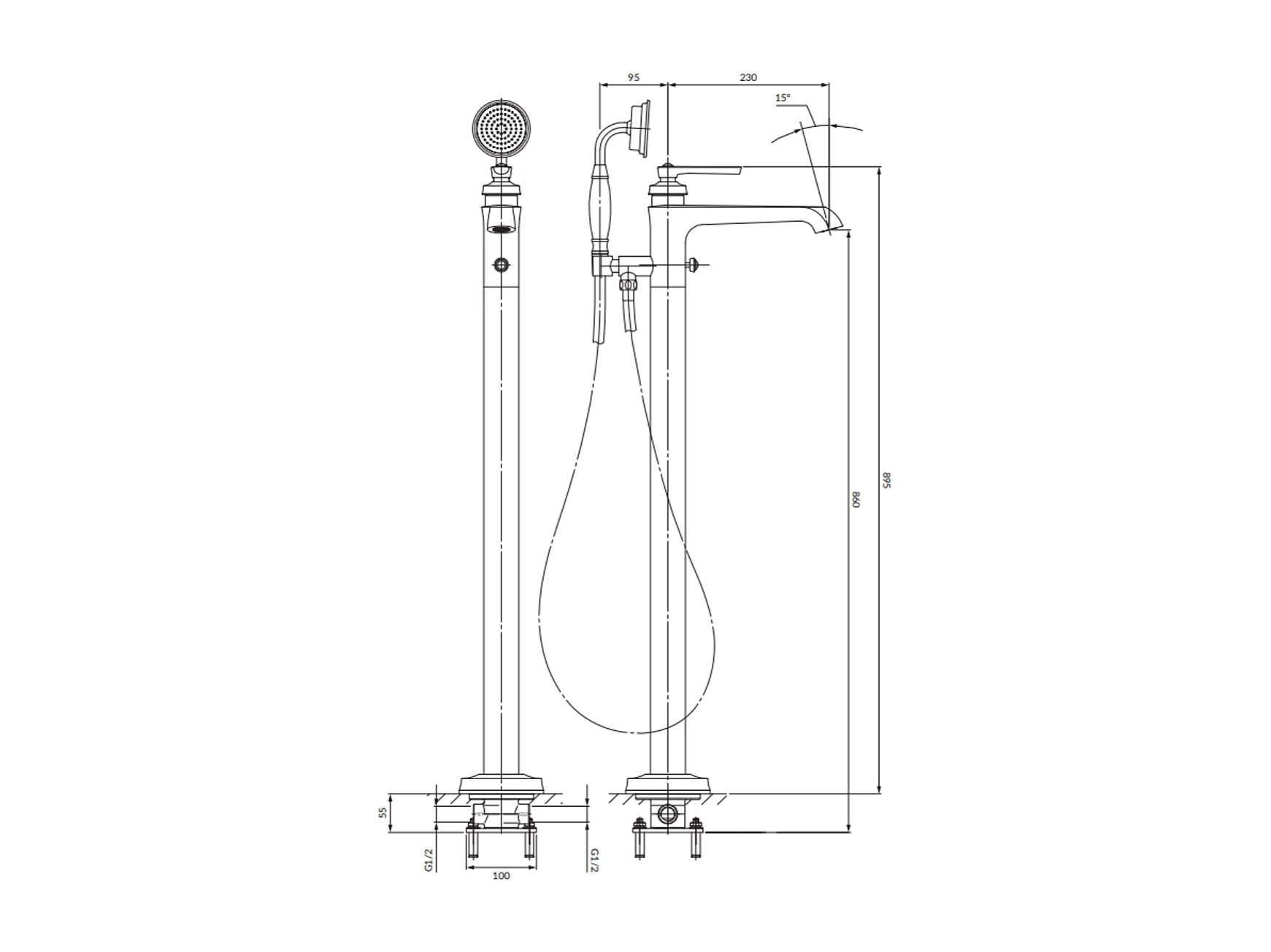 Mitigeur de baignoire îlot ARMANCE Couleur: cuivre antique
