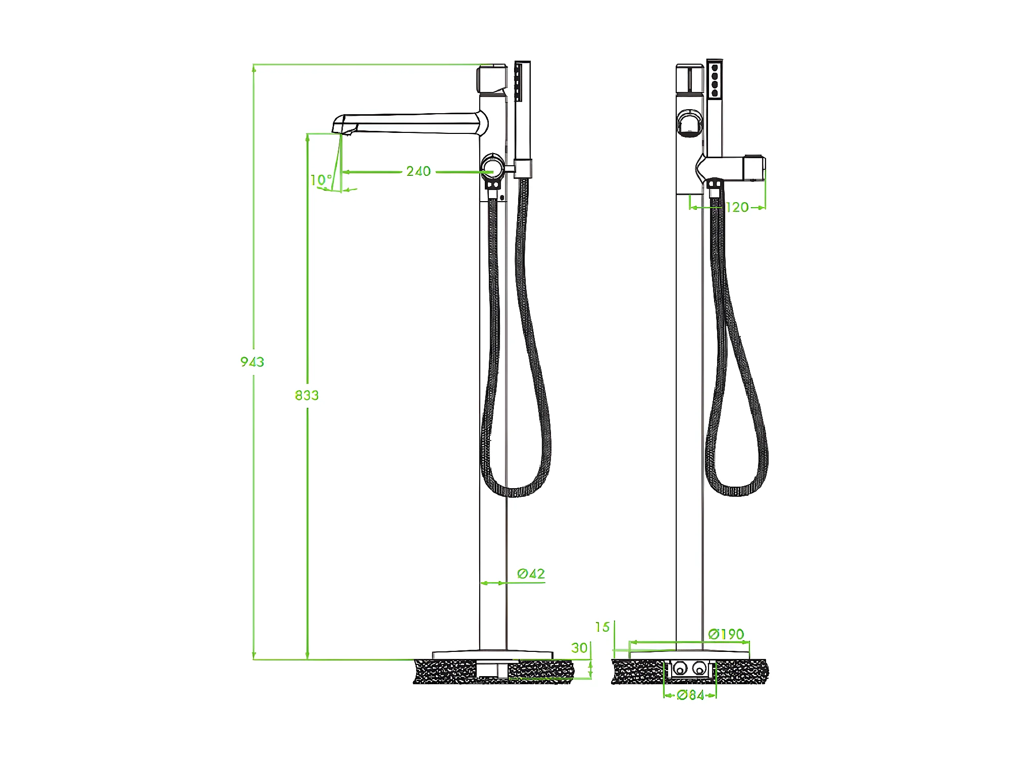 Mitigeur de baignoire îlot Pretto, couleur: Graphite