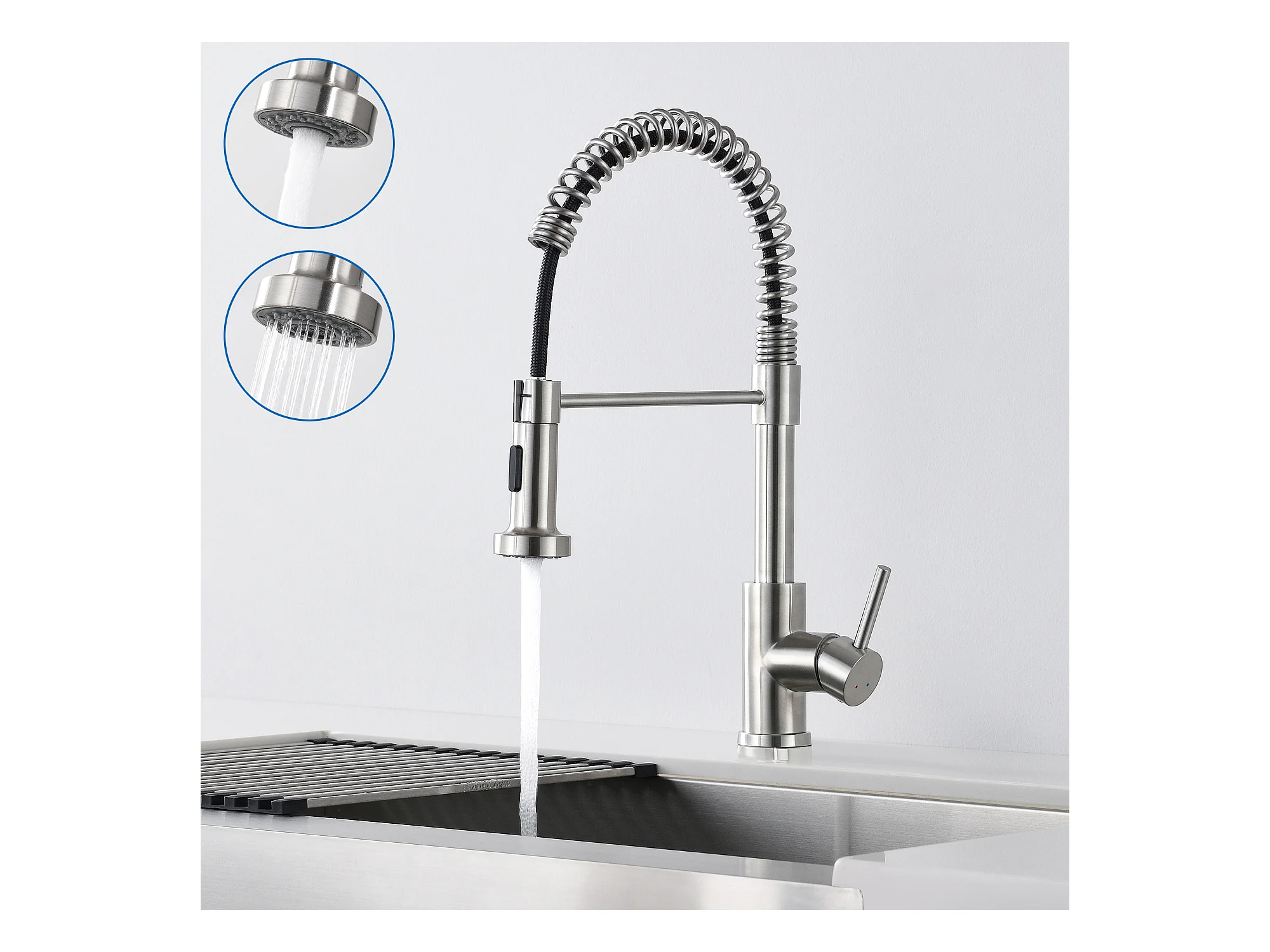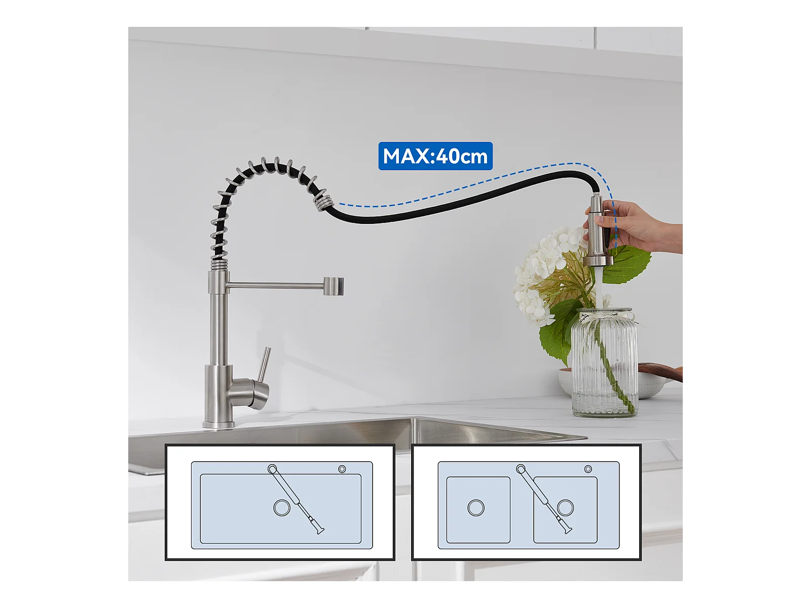 Mitigeur de Cuisine à Ressort ,avec Douchette Extensible, Robinet d'Évier Rotatif à 360° avec 2 Modes,Froid/Chaud Disponible,Chrome Brossé