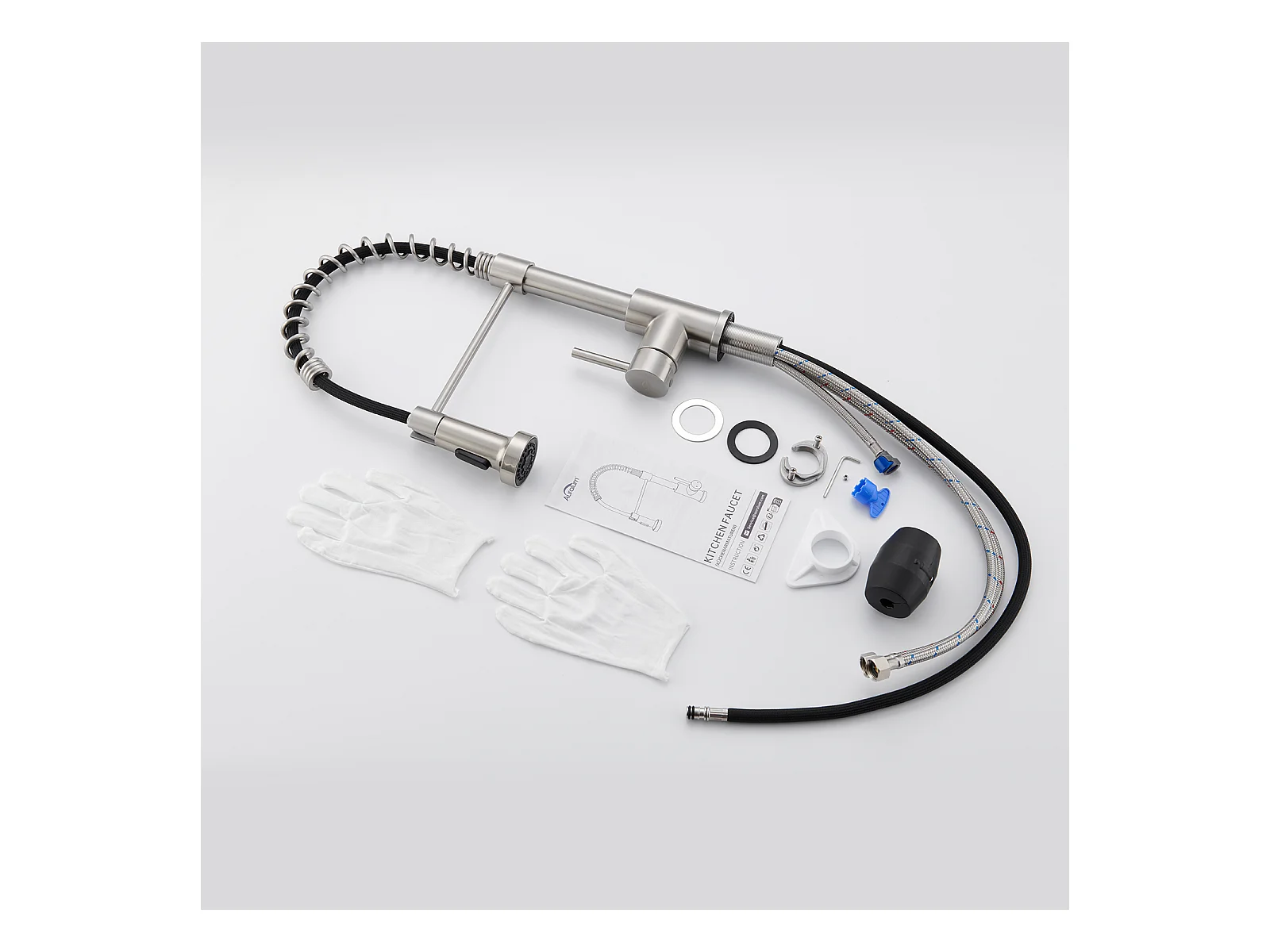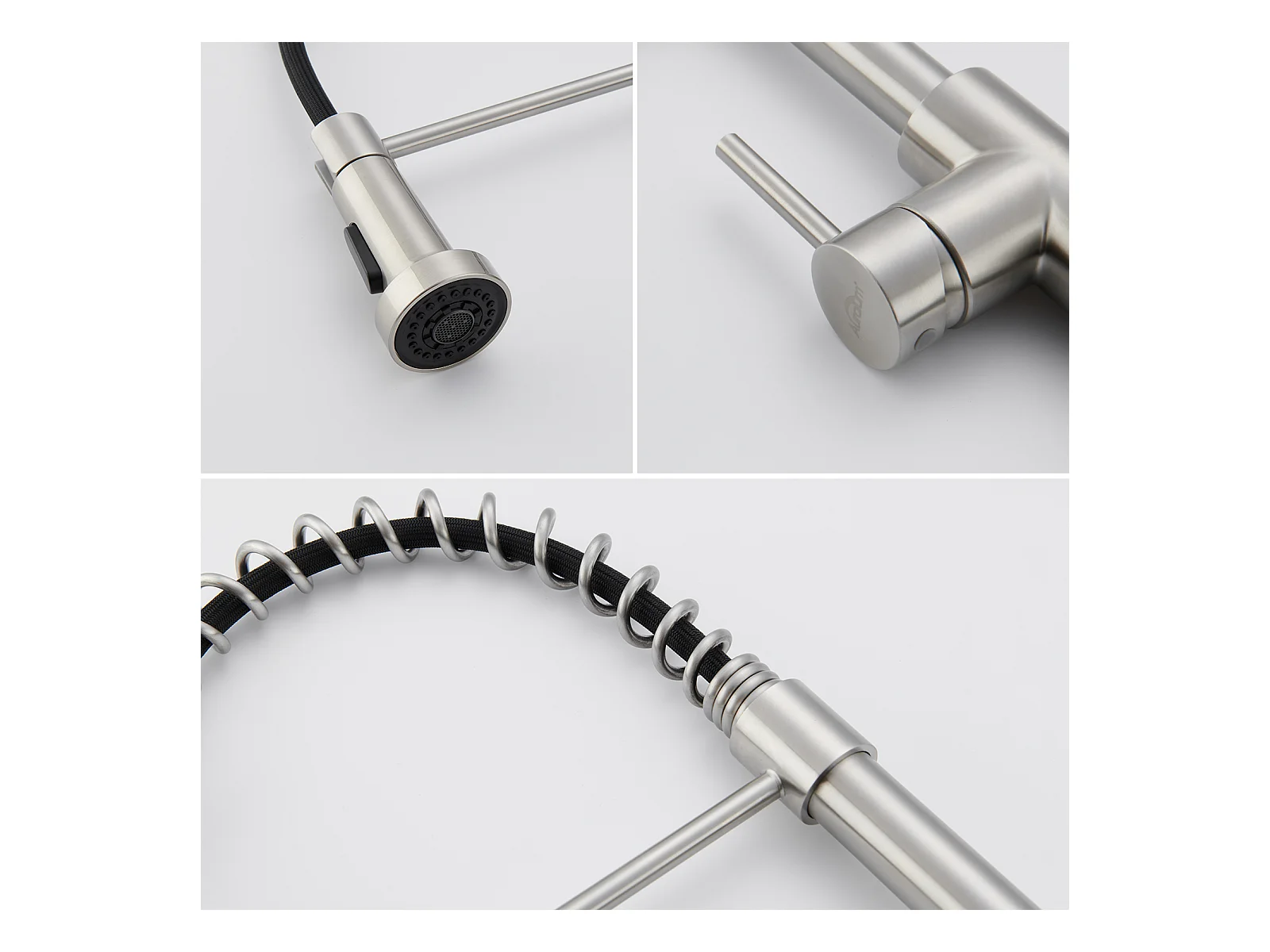 Mitigeur de Cuisine Brossé AuraLum Max pivotant 360° avec Tête Pulvérisation Rétractable,Robinet Cuisine à ressort,Inoxydable,Double Mode,EU Modèle