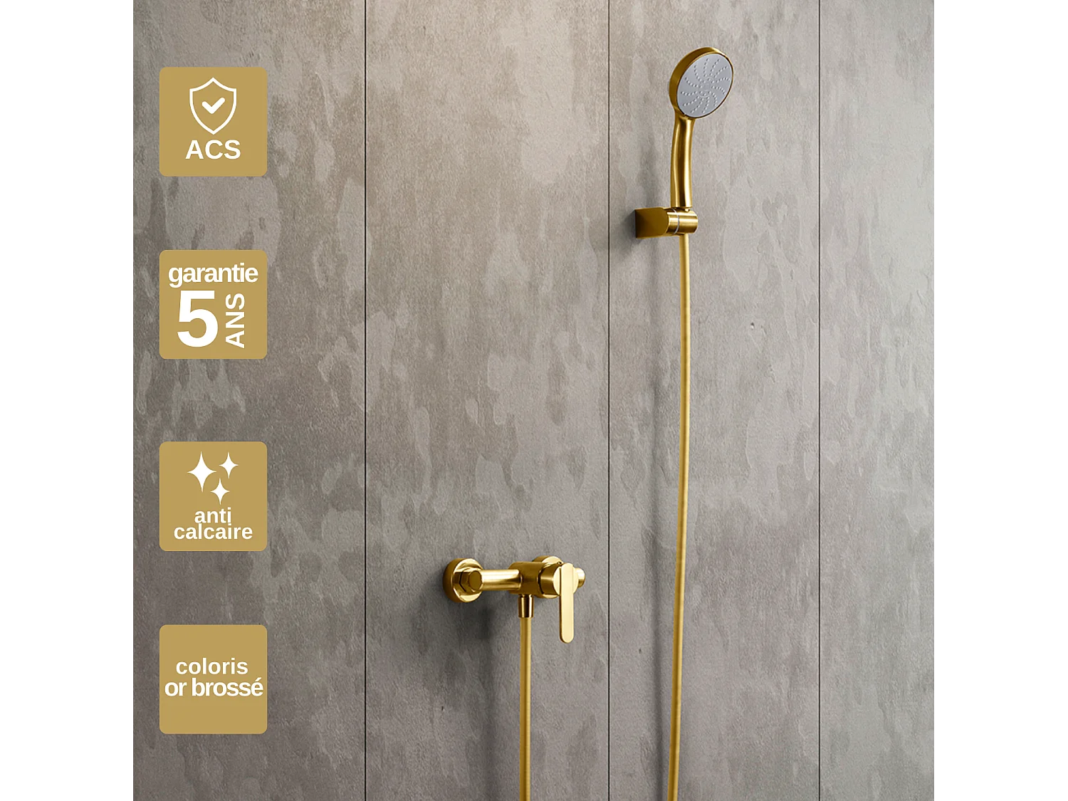 Robinet de douche mural TARAPOTO Doré