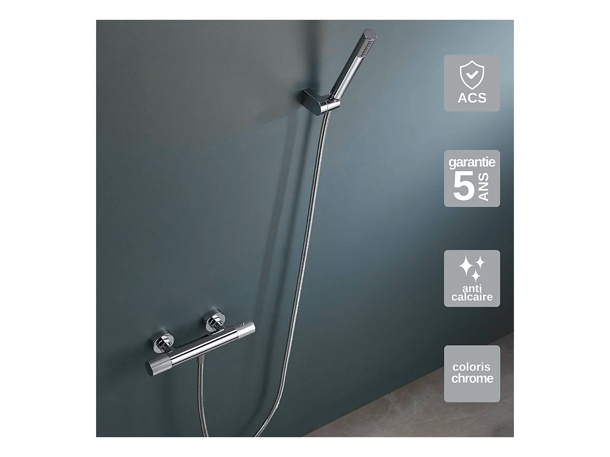 Ensemble de Douche Anti-Calcaire Thermostatique Chrome LINE BTD038-5