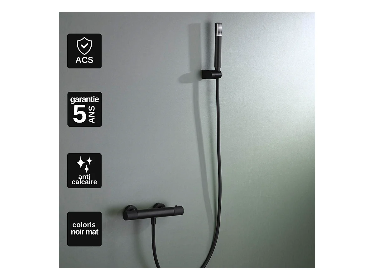 Ensemble de Douche Anti-Calcaire Thermostatique Noir Mat LINE BTD038-5NG