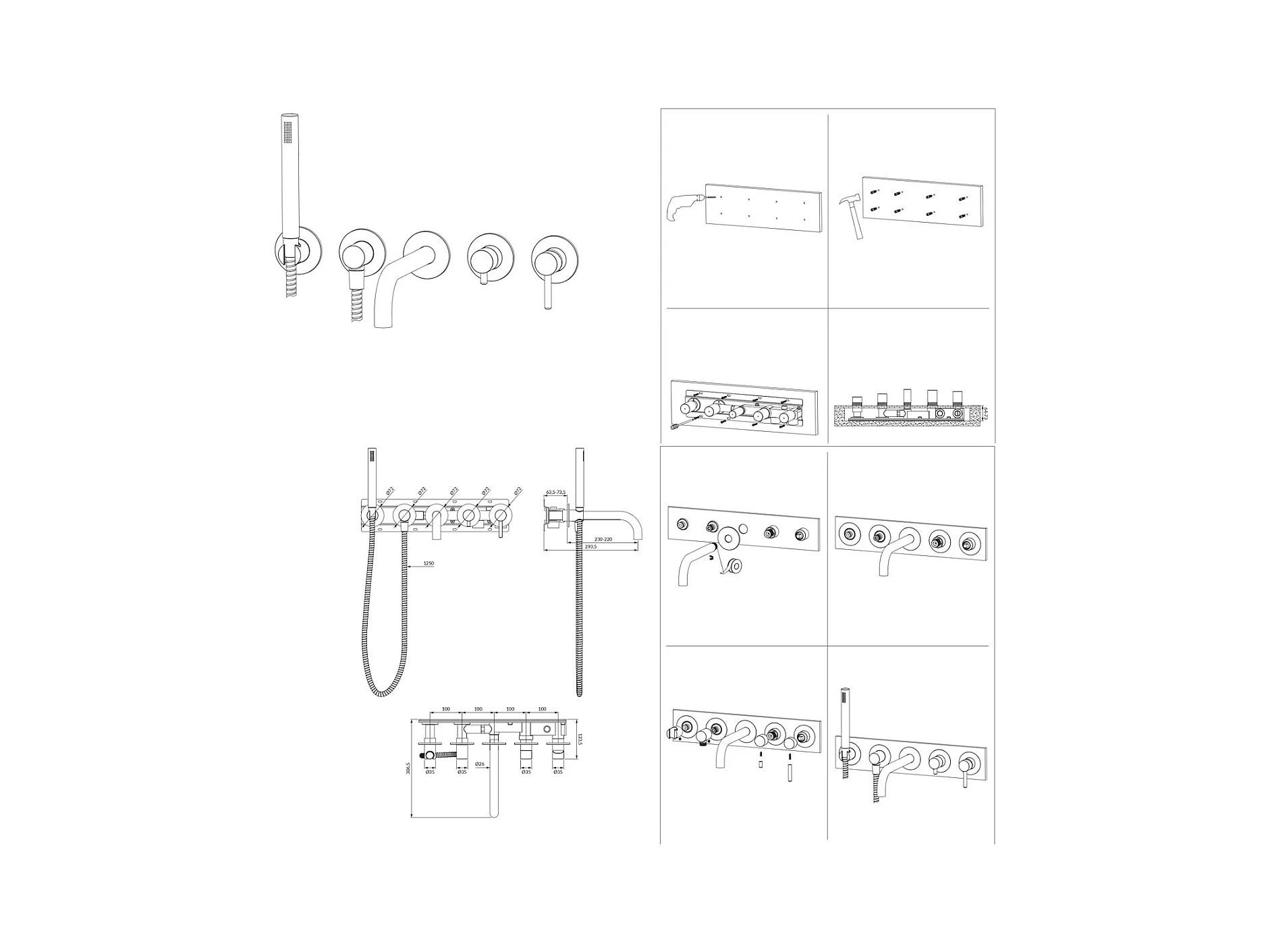 Mitigeur de douche et de baignoire à encastrer - 5 sorties - Y - Doré
