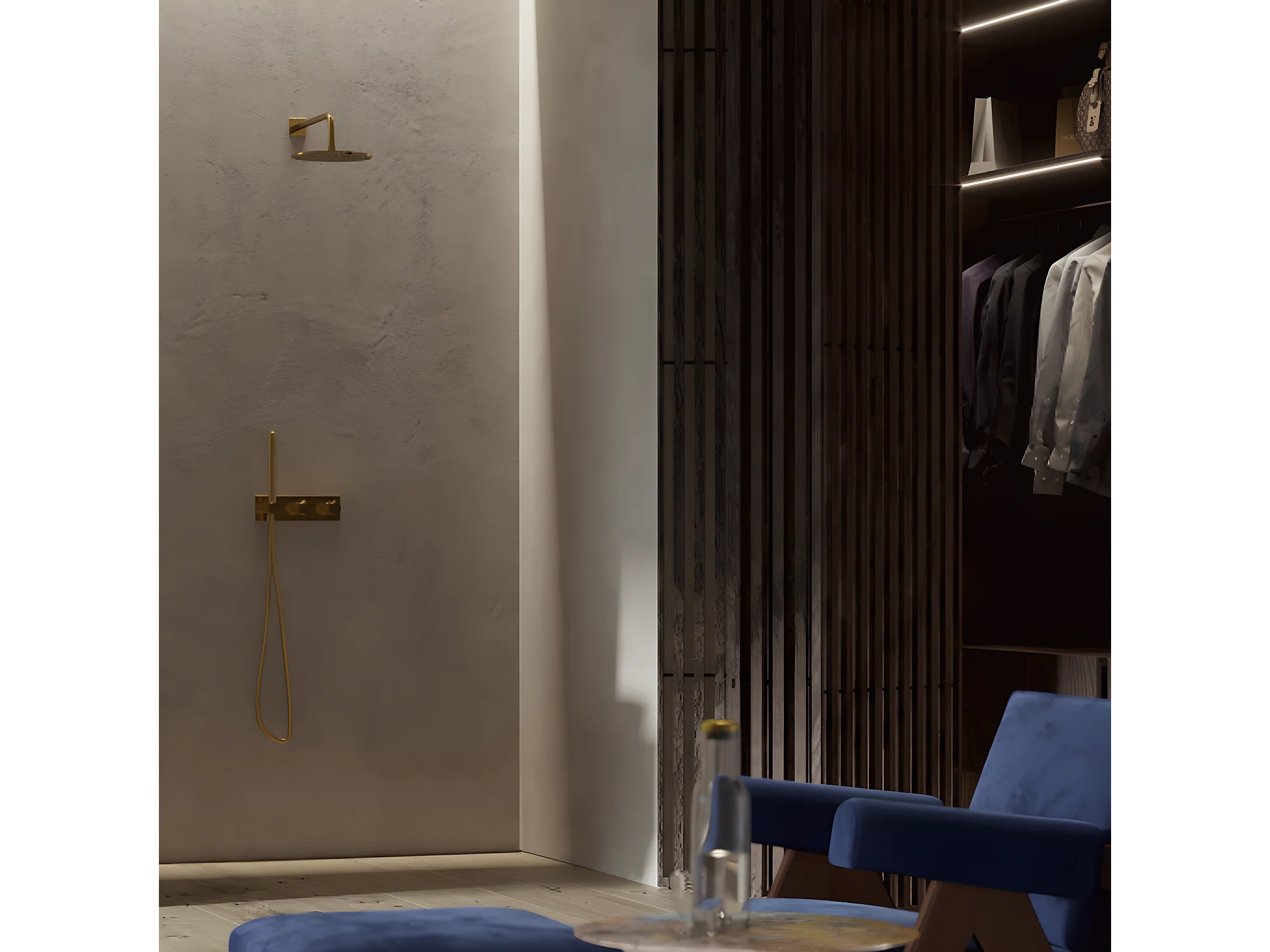 Mitigeur de douche et de baignoire à encastrer avec pommeau de douche - Or brossé