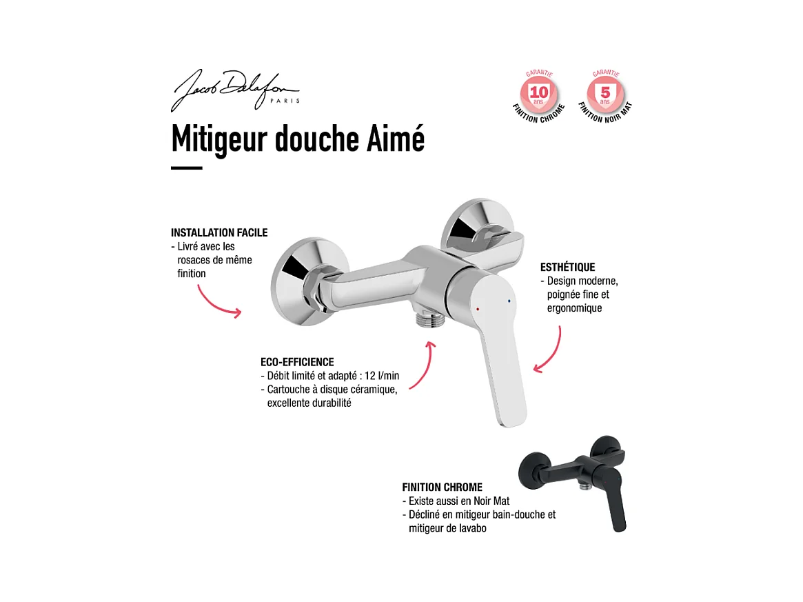 Mitigeur de douche JACOB DELAFON Aimé chrome + nettoyant