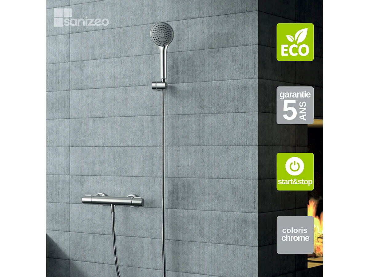 Ensemble de Douche Thermostatique Économie d'Eau Chrome ECO-KENT BTK017-5ECO
