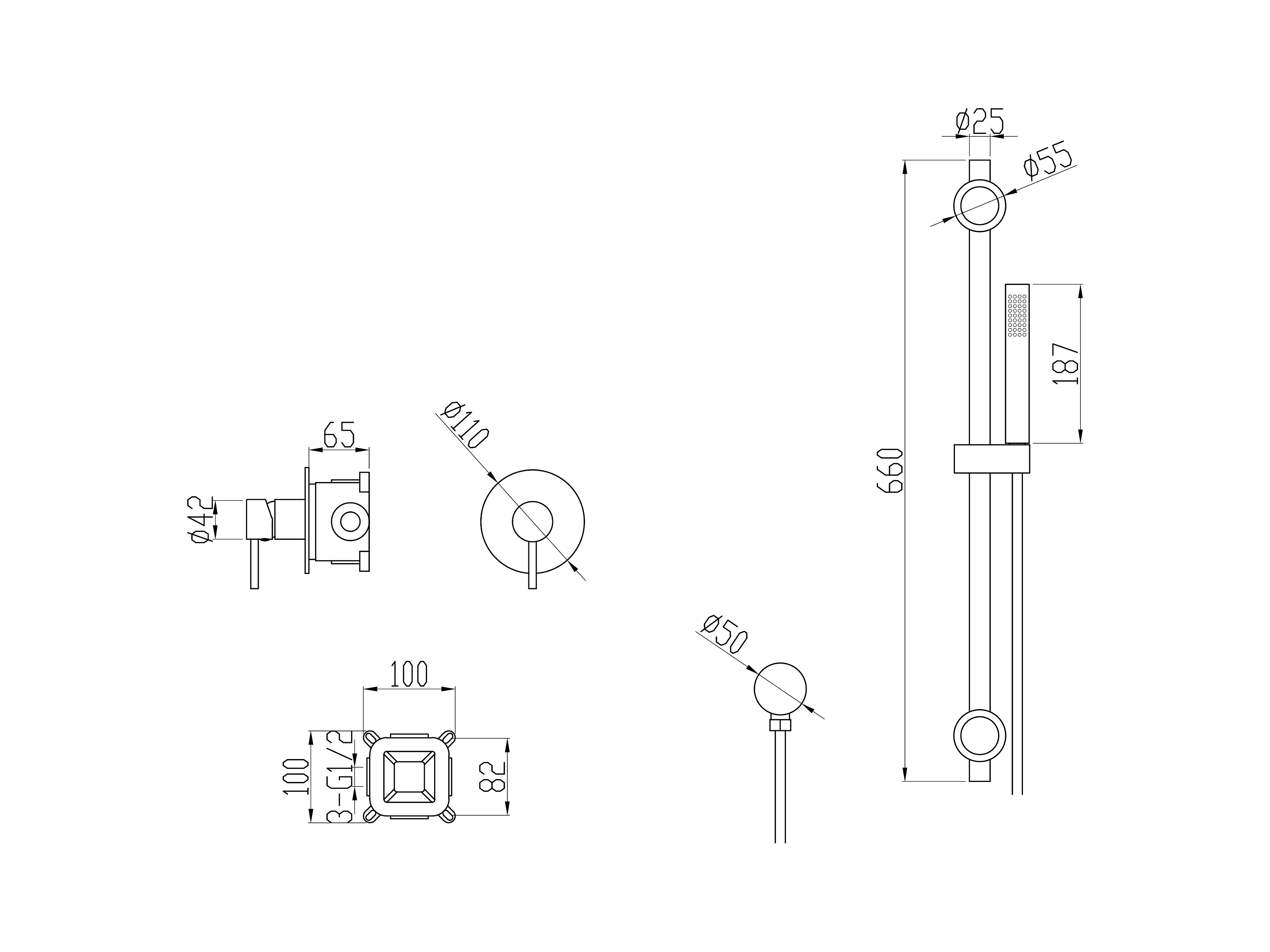 Mitigeur douche encastré avec ensemble barre et douchette Noir - Corbeau