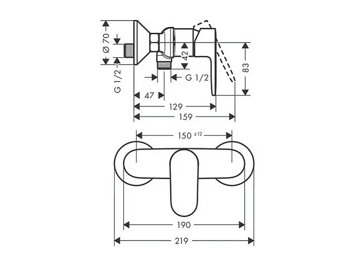 Mitigeur douche mécanique cartouche 2 vitesses HANSGROHE Vernis Blend chromé