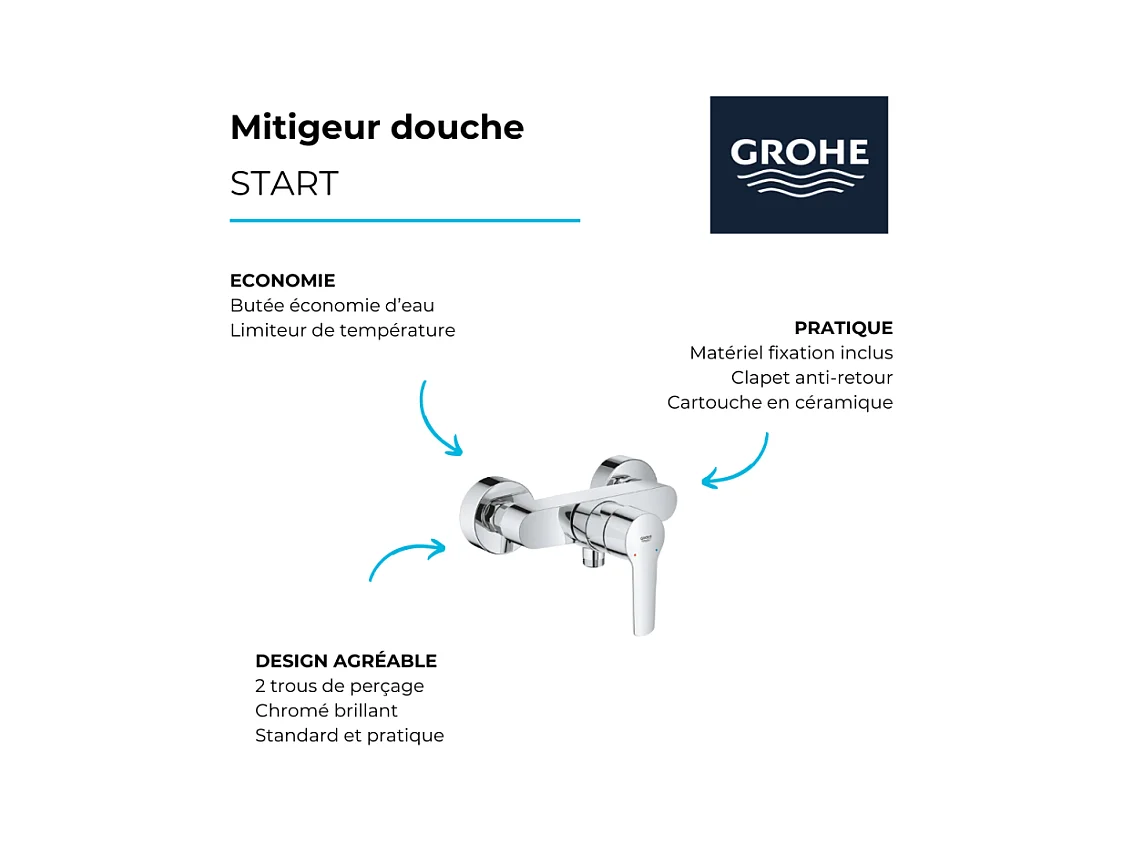 Mitigeur de douche mécanique GROHE Startedge + nettoyant