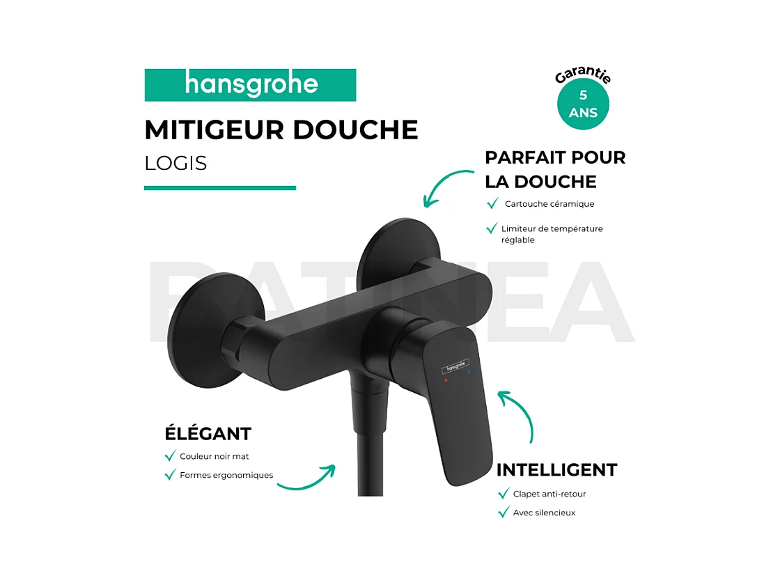 Mitigeur douche mécanique HANSGROHE Logis noir mat