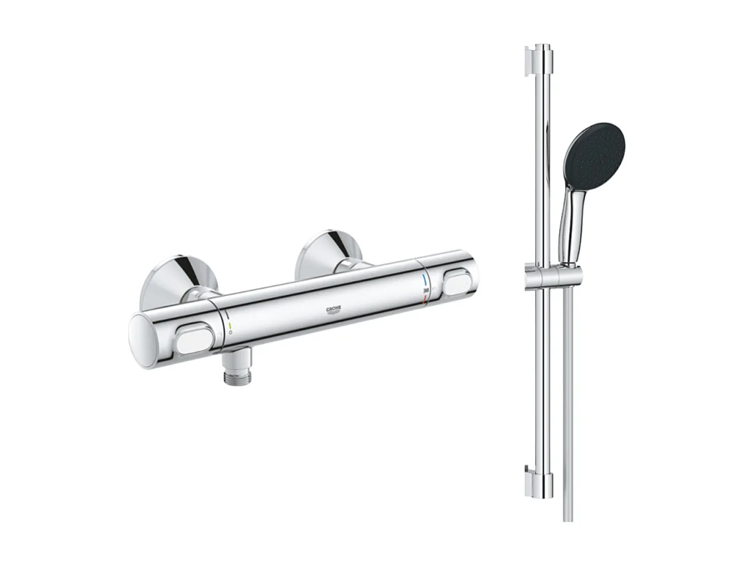Mitigeur douche thermostatique GROHE GROHE Precision Flow + Ensemble de douche 2 jets avec barre Chromé