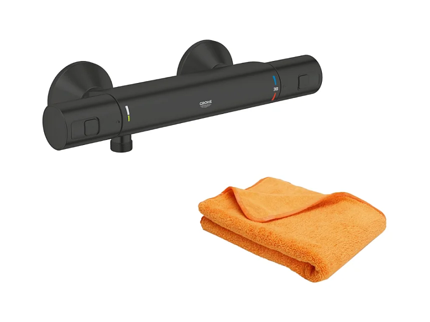 Mitigeur de douche thermostatique GROHE Precision Start noir mat + chiffonnette