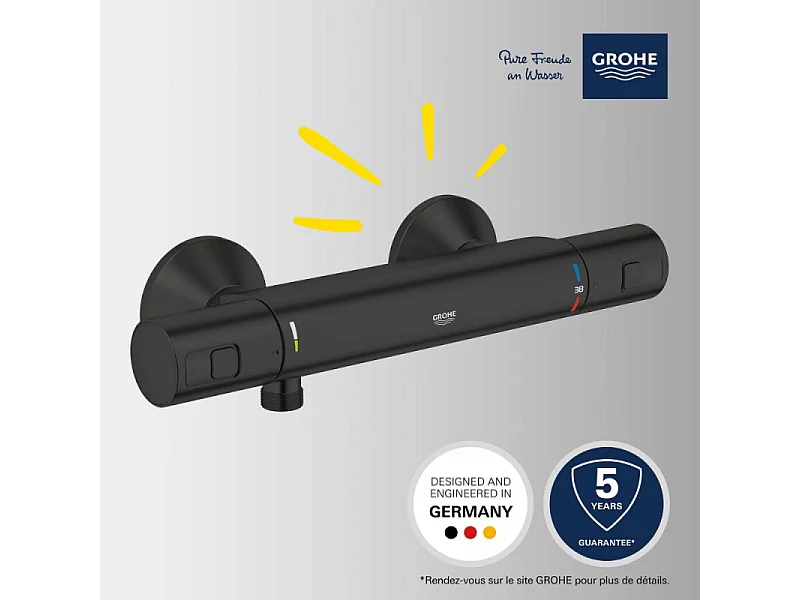 Mitigeur de douche thermostatique GROHE Precision Start noir mat + nettoyant