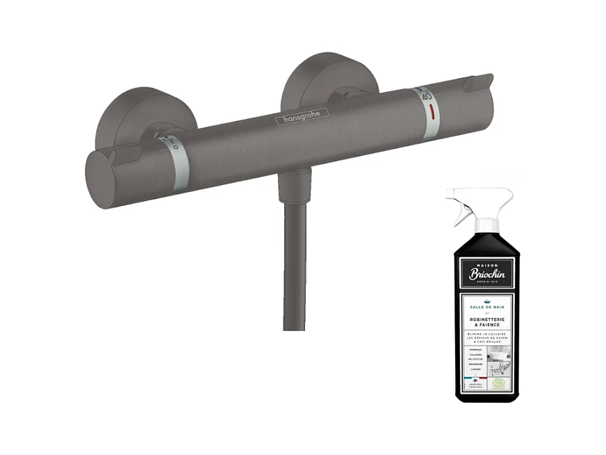 Mitigeur douche thermostatique HANSGROHE Ecostat Comfort noir chromé brossé + Nettoyant Briochin