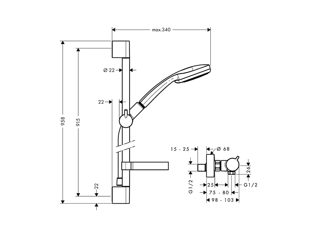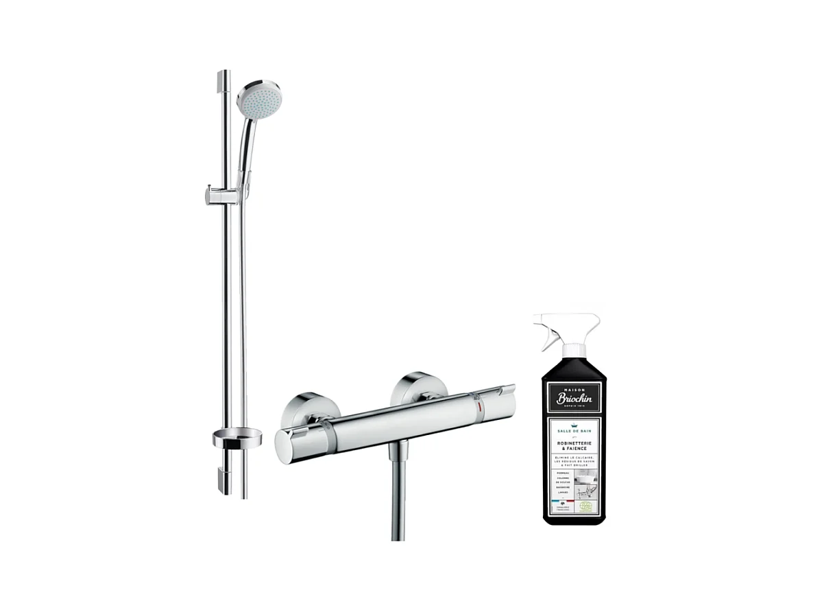Mitigeur douche thermostatique HANSGROHE Ecostat Comfort + pommeau de douche Crometta + barre de douche 90cm + nettoyant