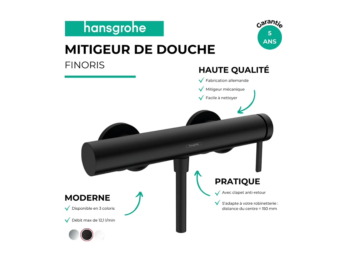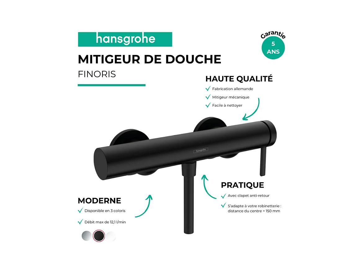 Mitigeur douche mécanique HANSGROHE Finoris noir mat