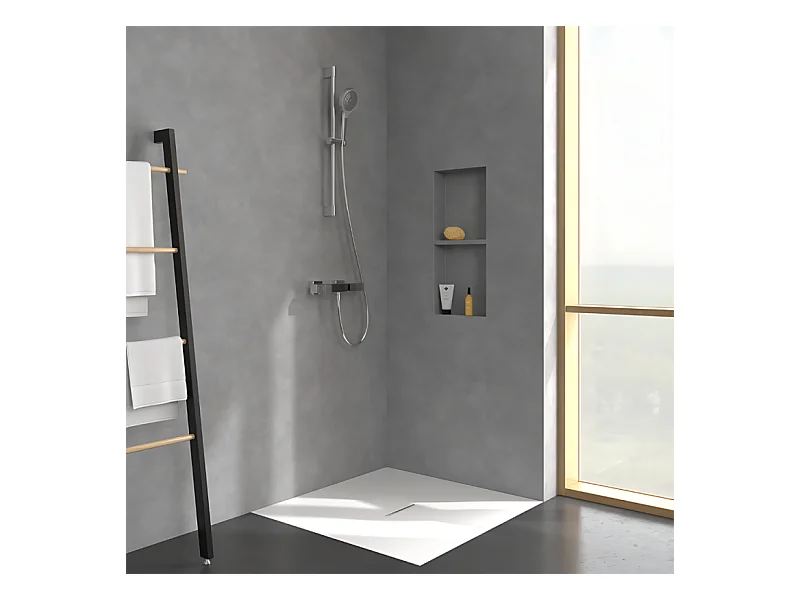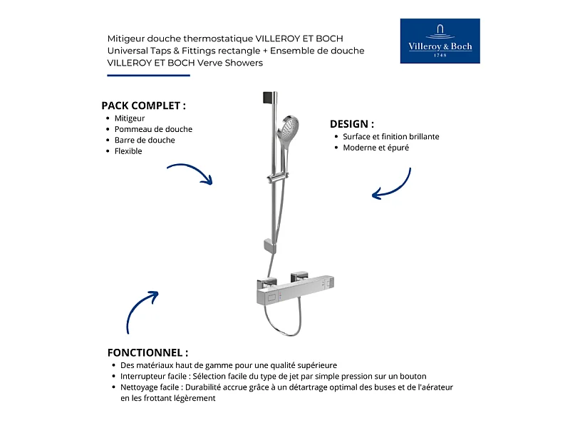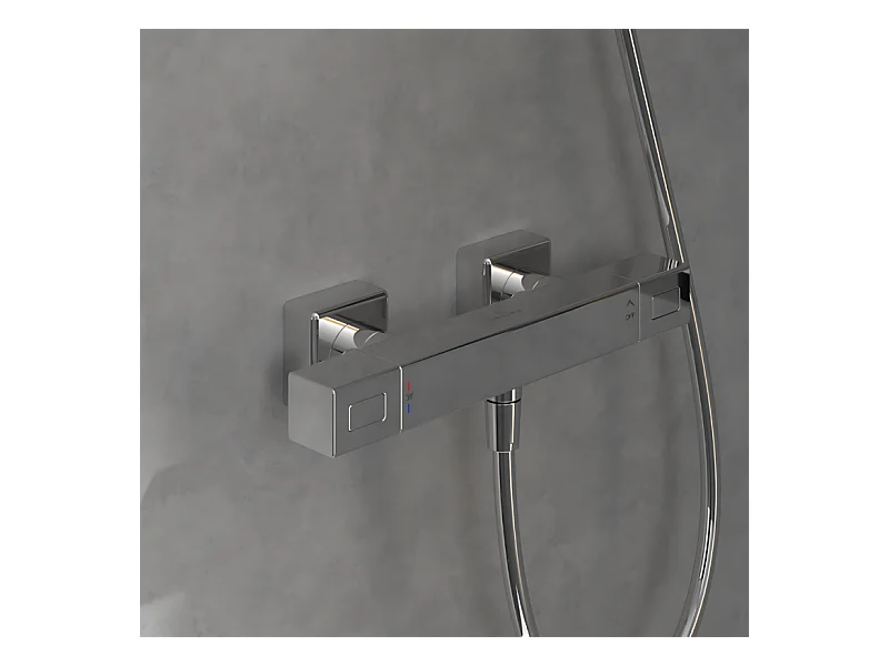 Mitigeur douche thermostatique VILLEROY ET BOCH Universal rectangle + Ensemble de douche Verve Showers chromé