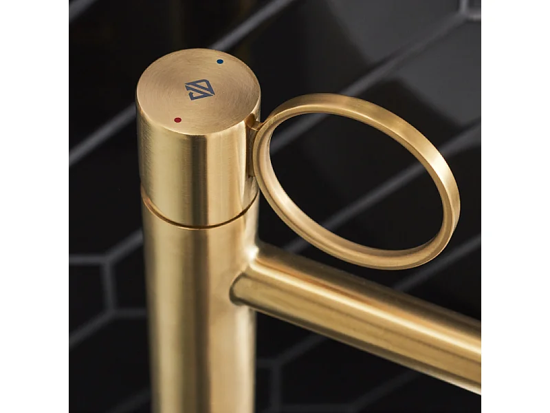Mitigeur lavabo bas JACOB DELAFON Vivienne laiton brossé avec bague laiton brossée
