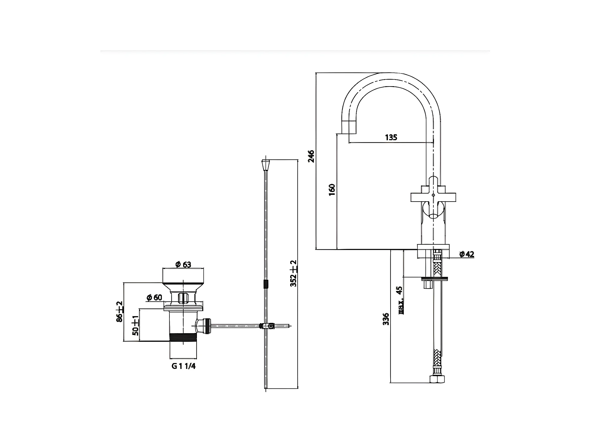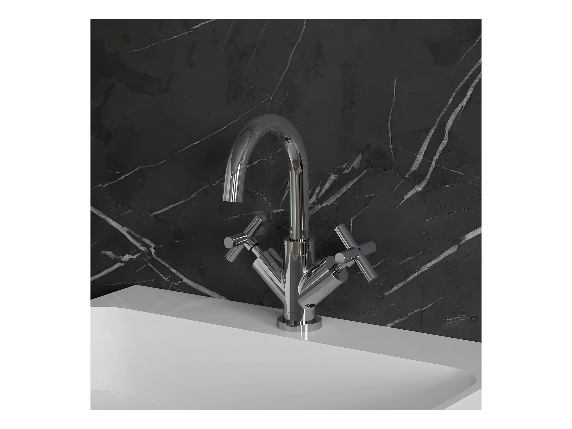 Mitigeur Lavabo Bas Modern, 24 Cm, Avec Bouchon Clic-clac, couleur : Chrome