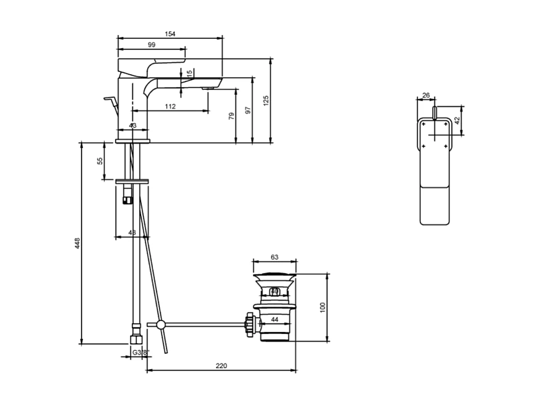 Mitigeur lavabo compact VILLEROY ET BOCH Subway 3.0 avec tirette Noir mat