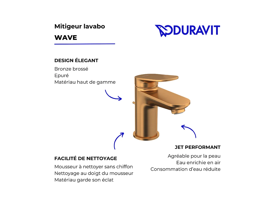 Mitigeur lavabo DURAVIT Wave S avec vidage bronze brossé
