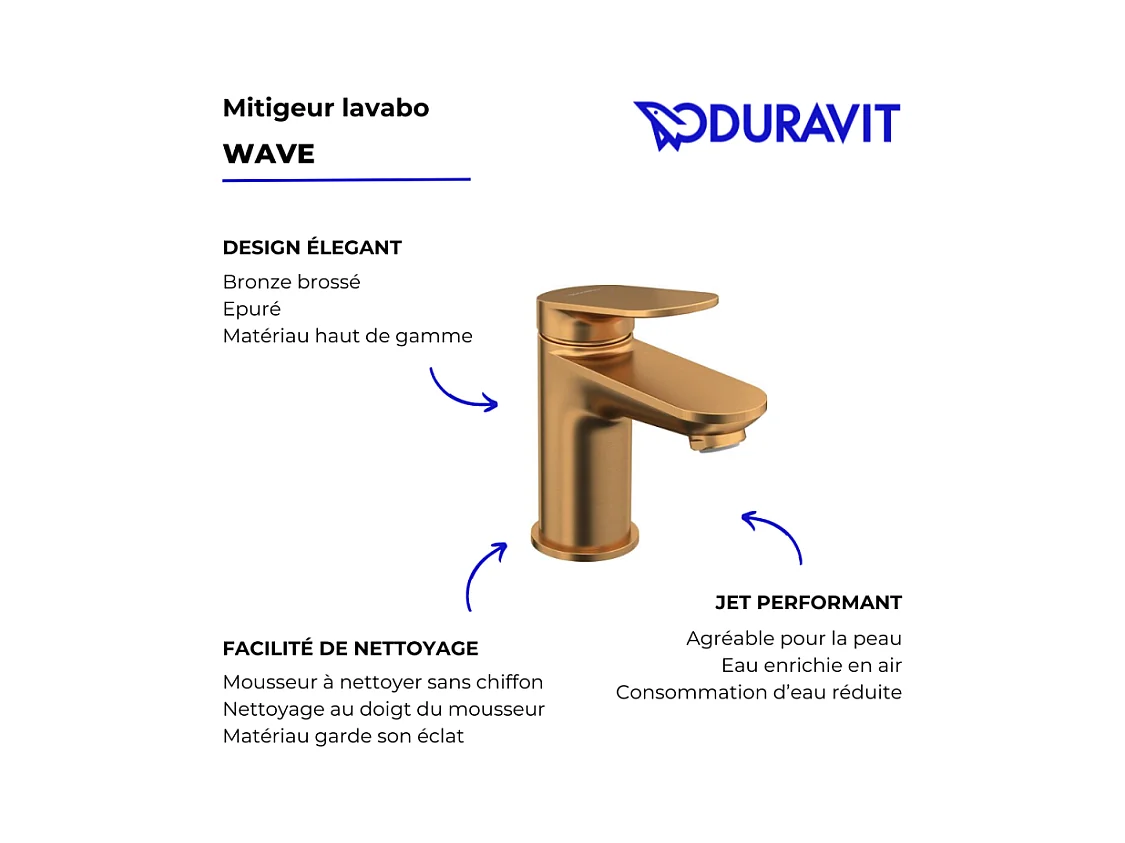 Mitigeur lavabo DURAVIT Wave S sans vidage bronze brossé