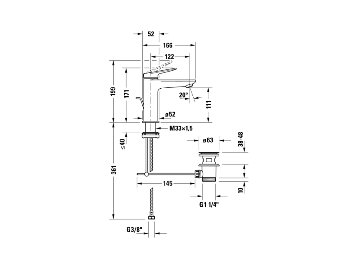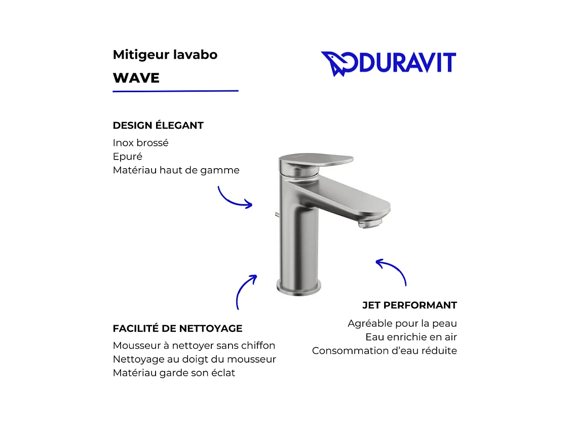 Mitigeur lavabo DUVARIT Wave M avec vidage inox brossé