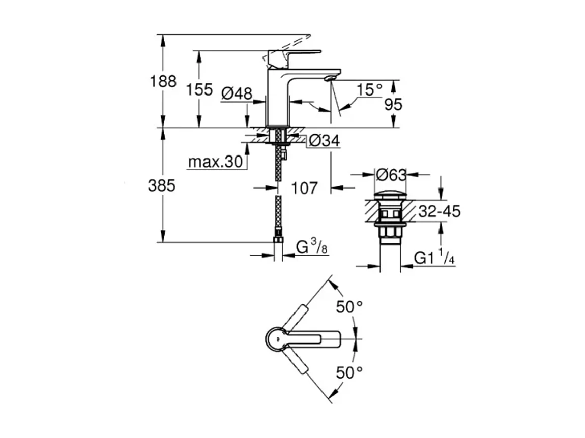 Mitigeur lavabo GROHE Lineare XS sans tirette