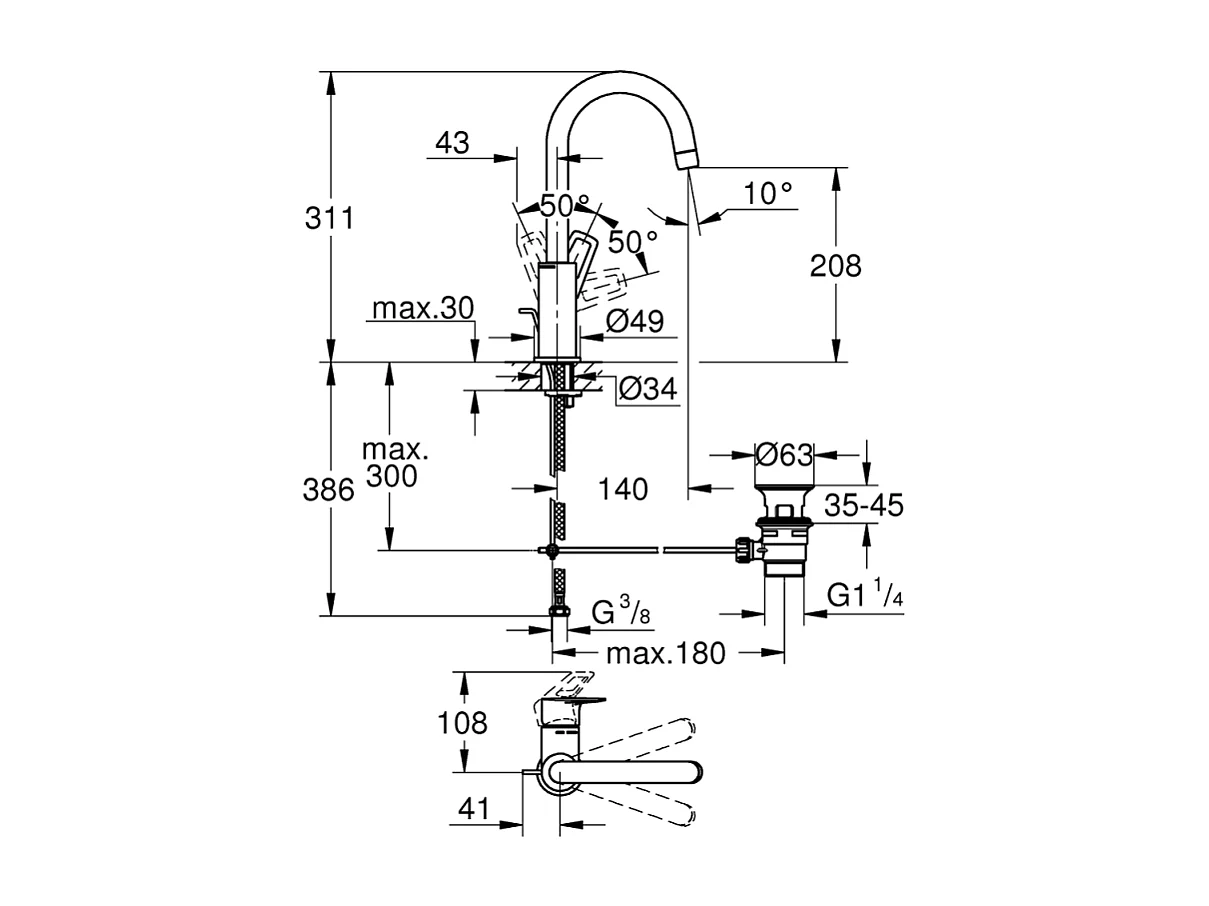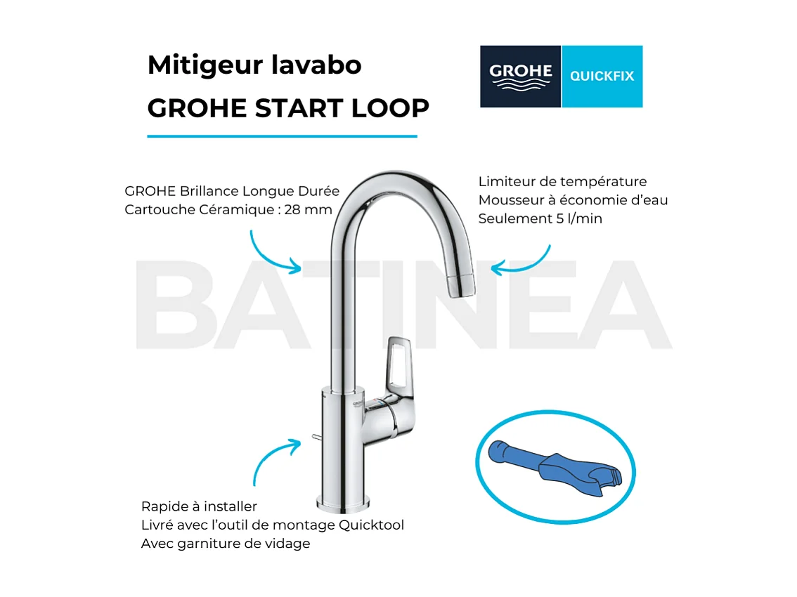 Mitigeur lavabo GROHE Start Loop bec col de cygne chromé
