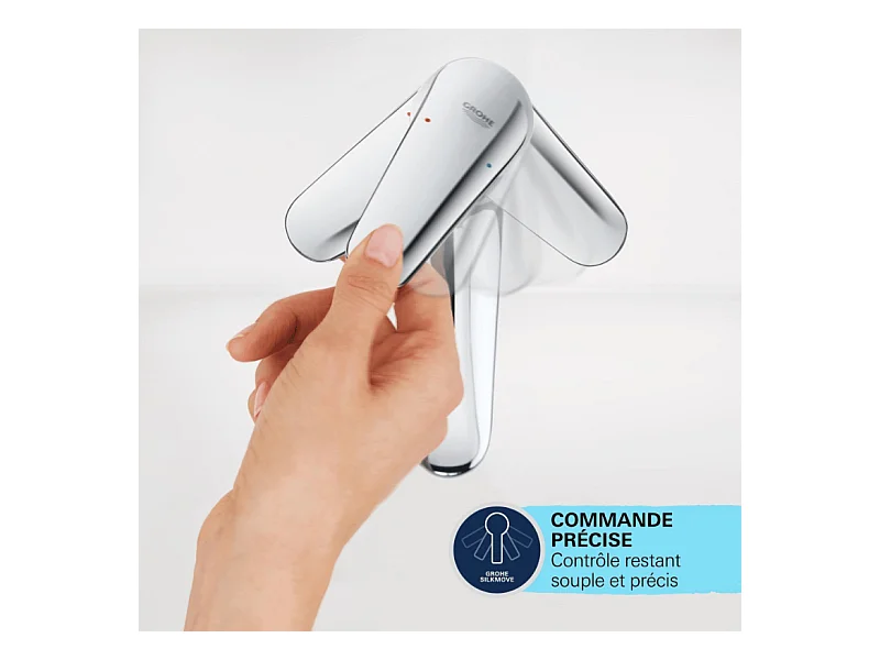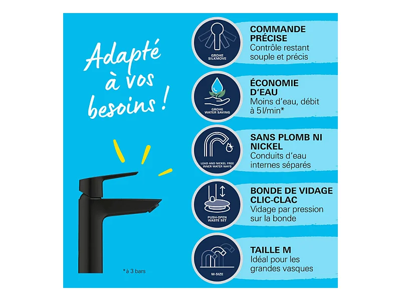 Mitigeur lavabo GROHE Start ouverture eau froide noir M + nettoyant GrohClean
