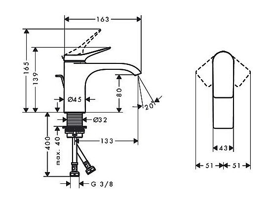 Mitigeur lavabo HANSGROHE Vivenis 80 avec tirette