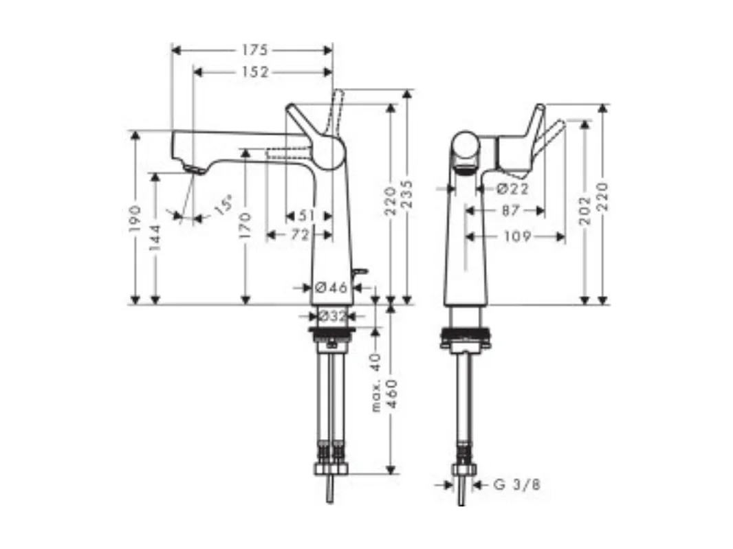 Mitigeur lavabo HANSGROHE250, avec tirette et vidage chrome + nettoyant Briochin