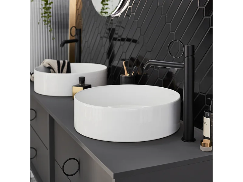 Mitigeur lavabo haut JACOB DELAFON Vivienne noir mat avec bague noire mate